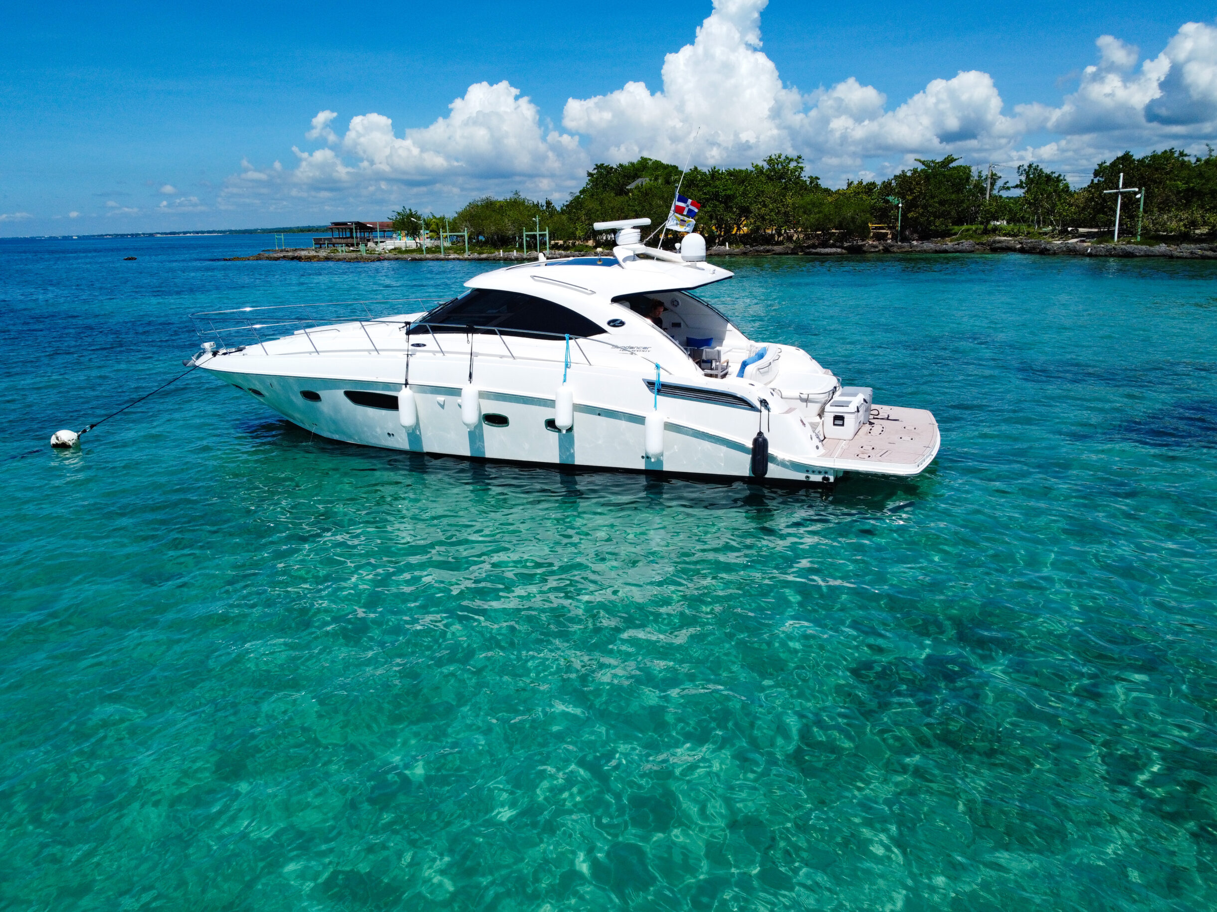 Montez à bord de notre Sea Ray Sundancer 470, un yacht moderne et raffiné idéal pour une croisière de luxe en République Dominicaine.